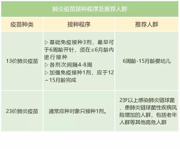 13价的 streptococcus pneumoniae肺炎球菌偶合疫苗(pcv13, prevnar ® )包含13种纯化的肺炎链球菌荚膜多糖,每种荚膜多糖都偶合一种无毒的白喉毒素变异体。 这种疫苗已经取代了7价疫苗(pcv7);pcv13疫苗不仅包含了pcv7的7个血清型,还含有6个额外的血清型。 13價肺炎鏈球菌. 根据2017年上海市第二类疫苗接种规划,建议在宝宝2月、4月、6月各接种一剂基础免疫,并且在12—15月接种1剂加强免疫。而2岁以后,则建议接种一剂23价常规肺炎疫苗。 4 tips 除了打疫苗 冬季如何预防宝宝肺炎.